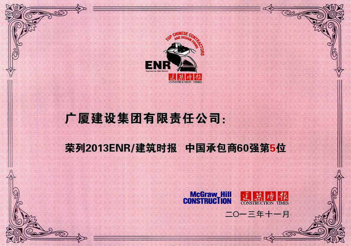 廣廈建設(shè)集團(tuán)榮列“中國(guó)承包商60強(qiáng)”第五名
