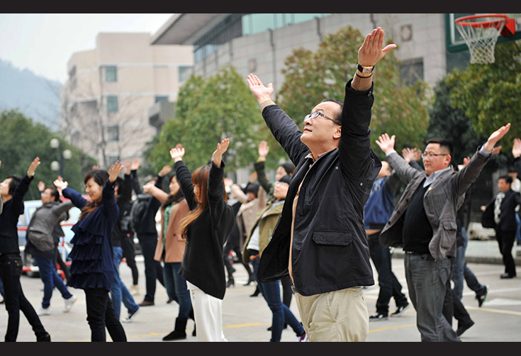 3月22日,一支充滿激情,朝氣蓬勃的隊伍出現(xiàn)在黃龍體育中心室外籃球場上。“一二三四五六七八……”伴隨著清脆響亮的口號聲,控股集團總部全體員工齊做強身健體廣播操。他們精神飽滿,成為籃球場上最靚麗的風景線。